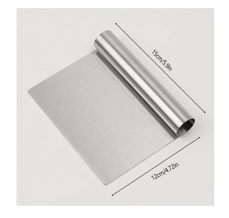 bench scraper - as the name suggests, this tool scrapes the workspace clean and gathers the biscuit dough for layering. can also be used to cut biscuits into squares (my preference) and other shapes.