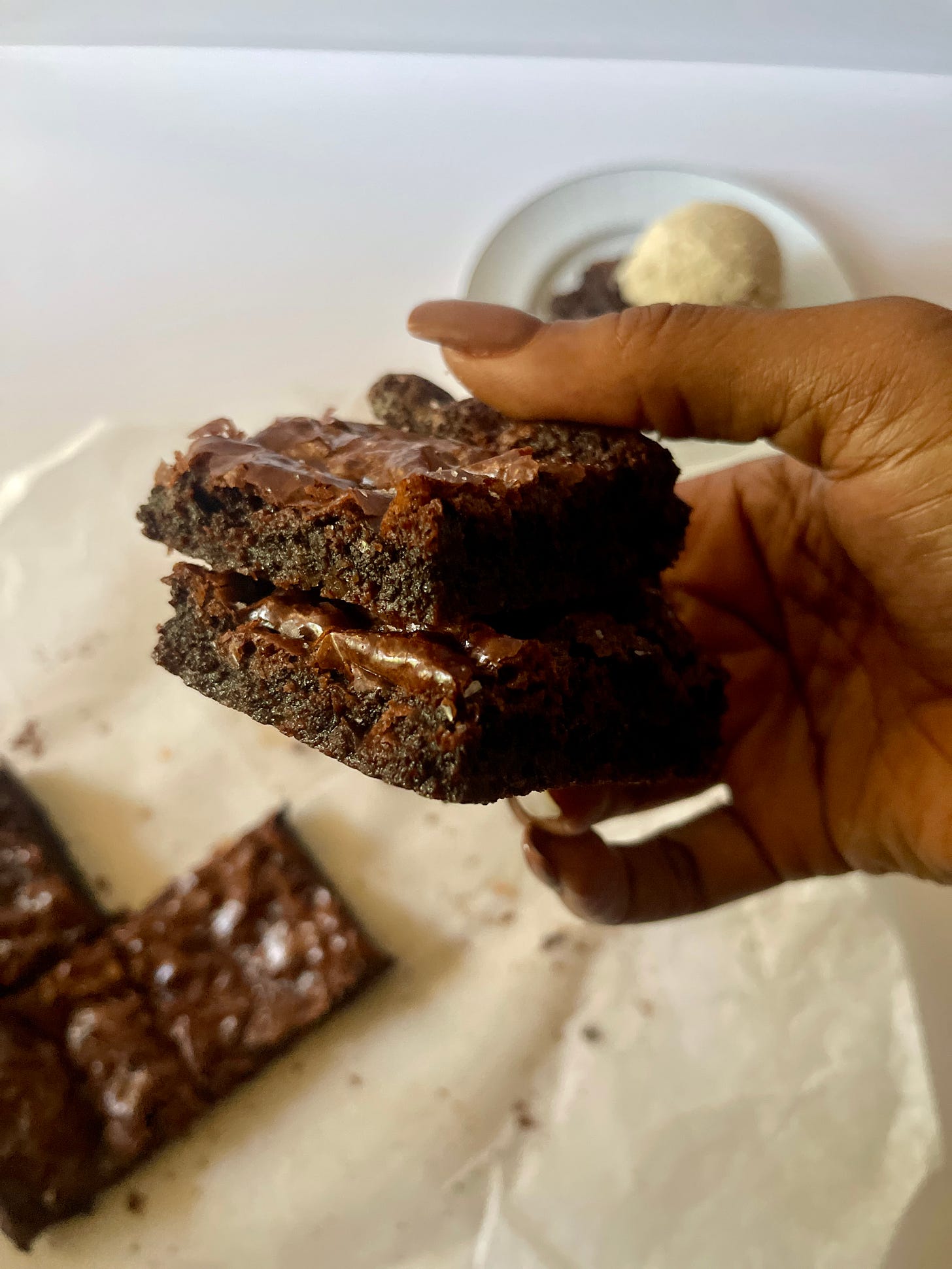i think we've struck the perfect brownie balance of chewy, cake-y, and fudge-y. with the crackly tops and everything!
